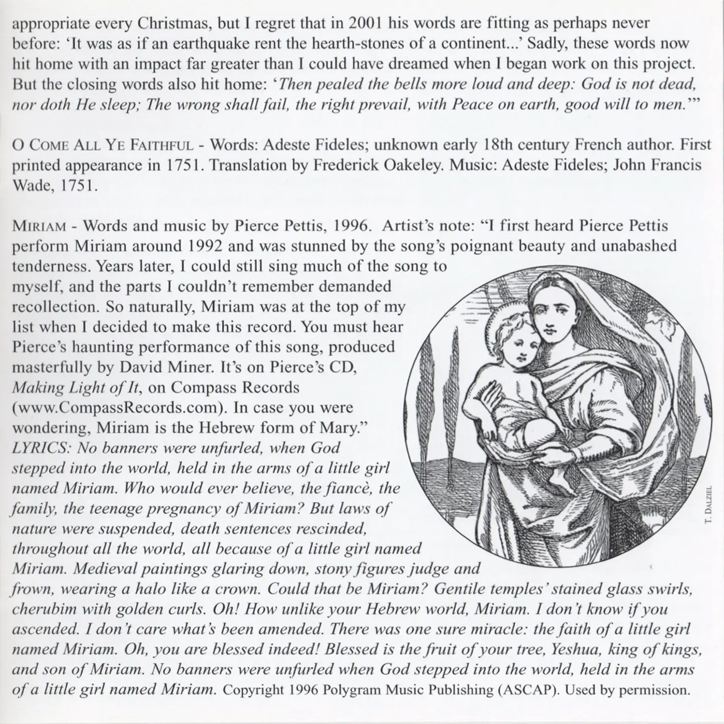 Nine old favorites, plus a new Christmas song written and performed by David Edwards and Randy Stonehill, plus Miriam, by Pierce Pettis.