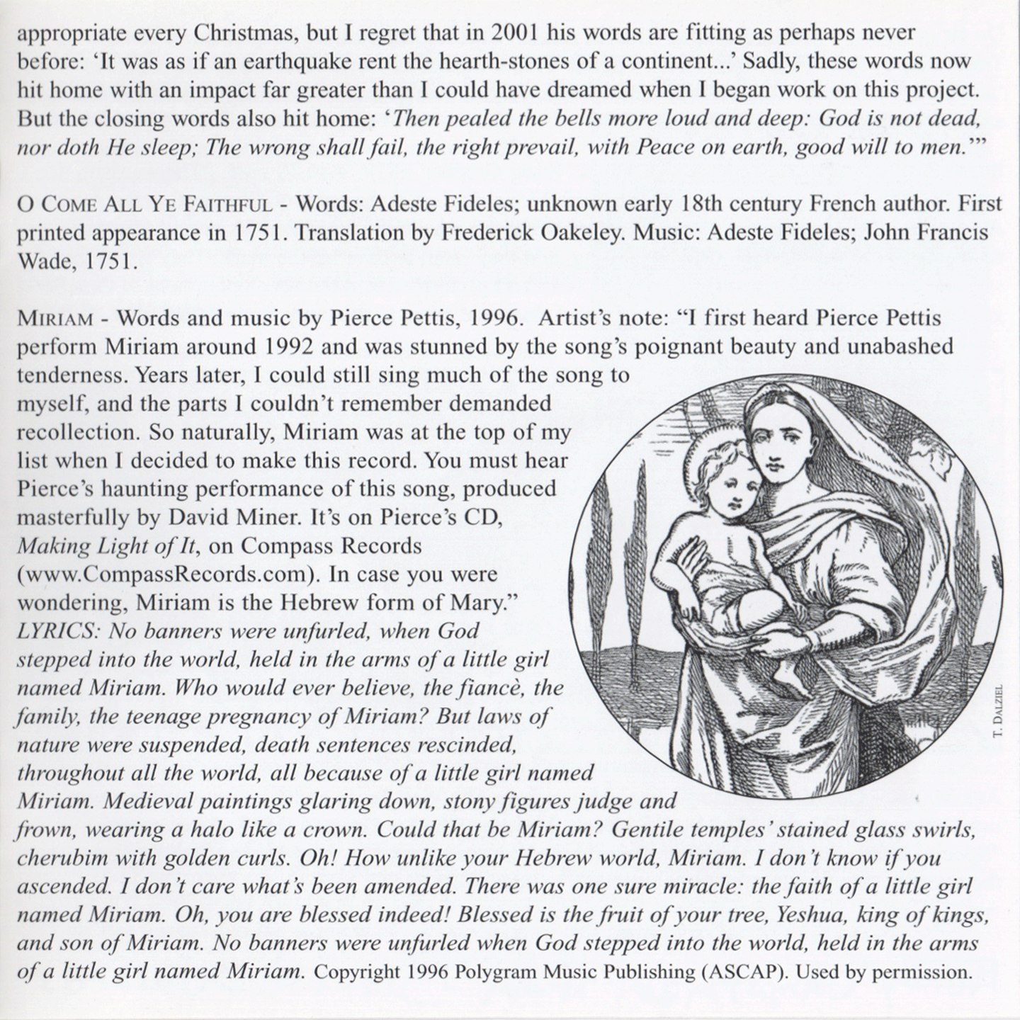 Nine old favorites, plus a new Christmas song written and performed by David Edwards and Randy Stonehill, plus Miriam, by Pierce Pettis.